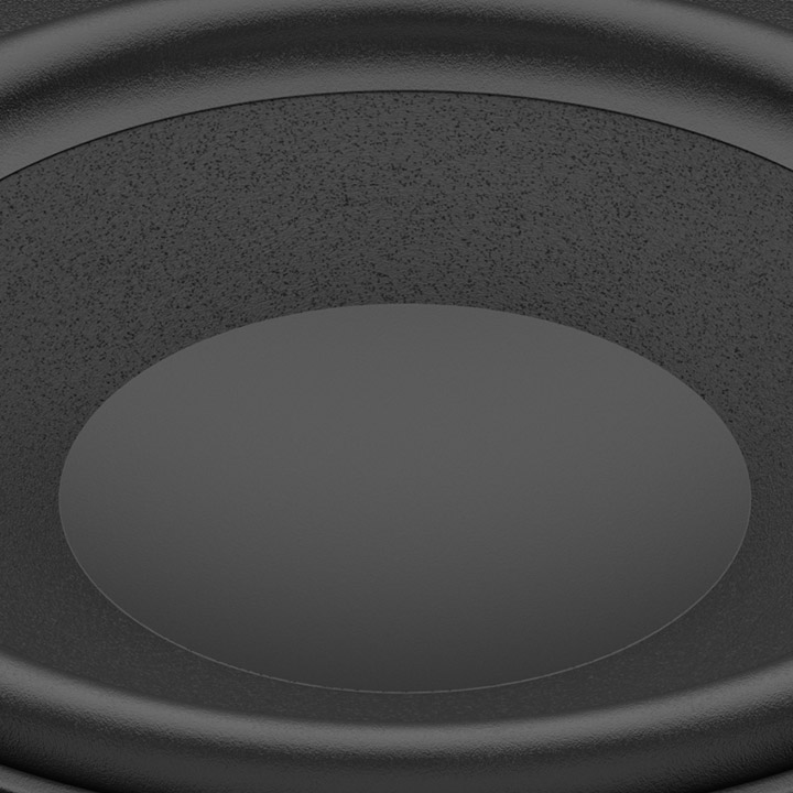Les cônes des subwoofers sont composés de pulpe semi-pressée pour un diaphragme léger mais rigide, capable de supporter les pressions élevées de la reproduction des basses fréquences sans sacrifier la vitesse ou la précision. Le cache-poussière à profil allongé, conçu à l'aide du logiciel FEM, améliore non seulement la rigidité, mais s'aligne également sur le style raffiné de la ligne VOCE II. Cette combinaison permet d'obtenir des basses serrées et sans distorsion, fidèles au signal original, avec une réponse en fréquence adaptée à la musicalité et non à la force brute.