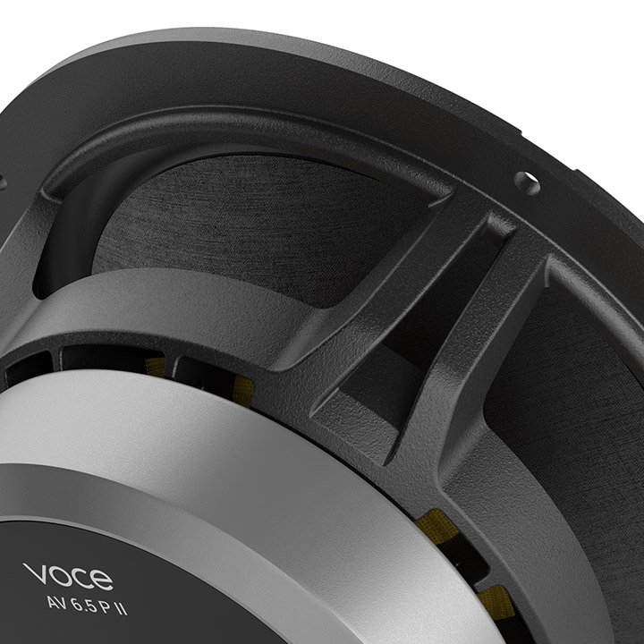 Le woofer AV 6.5 P II complète le système, offrant une puissance et un contrôle sans compromis dans la reproduction des basses et des moyennes fréquences. Conçu pour supporter jusqu'à 150 W RMS, ce woofer est parfait pour ceux qui recherchent une réponse immédiate et précise dans les basses moyennes, avec une dynamique puissante sans distorsion. Équipé d'un puissant aimant et d'un CCAW (Copper Clad Aluminum Wire) de 40 mm, l'AV 6.5 P II garantit une réponse linéaire sur l'ensemble du spectre des basses et moyennes fréquences. Sa polyvalence lui permet de travailler en toute transparence avec le DSP, en optimisant les performances sonores dans toutes les conditions, en assurant toujours une reproduction naturelle et dynamique.