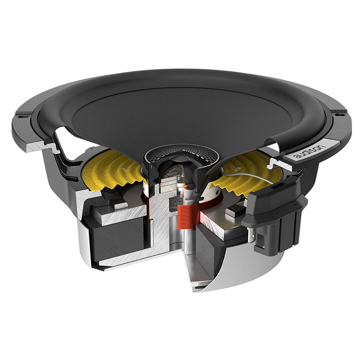 Le système auditif humain est particulièrement sensible aux fréquences moyennes, car c'est là que la voix devient intelligible par rapport au reste du spectre audio. Partant de ce principe, l'équipe R&D d'Audison a conçu le médium AV 3.0 II et le médium-basse AV 6.5 P II avec un objectif ambitieux : atteindre une linéarité extrême. Il s'agit de reproduire fidèlement le signal sans rien ajouter ni cacher, pour apprécier le message musical tel qu'il a été conçu par l'artiste et les producteurs.